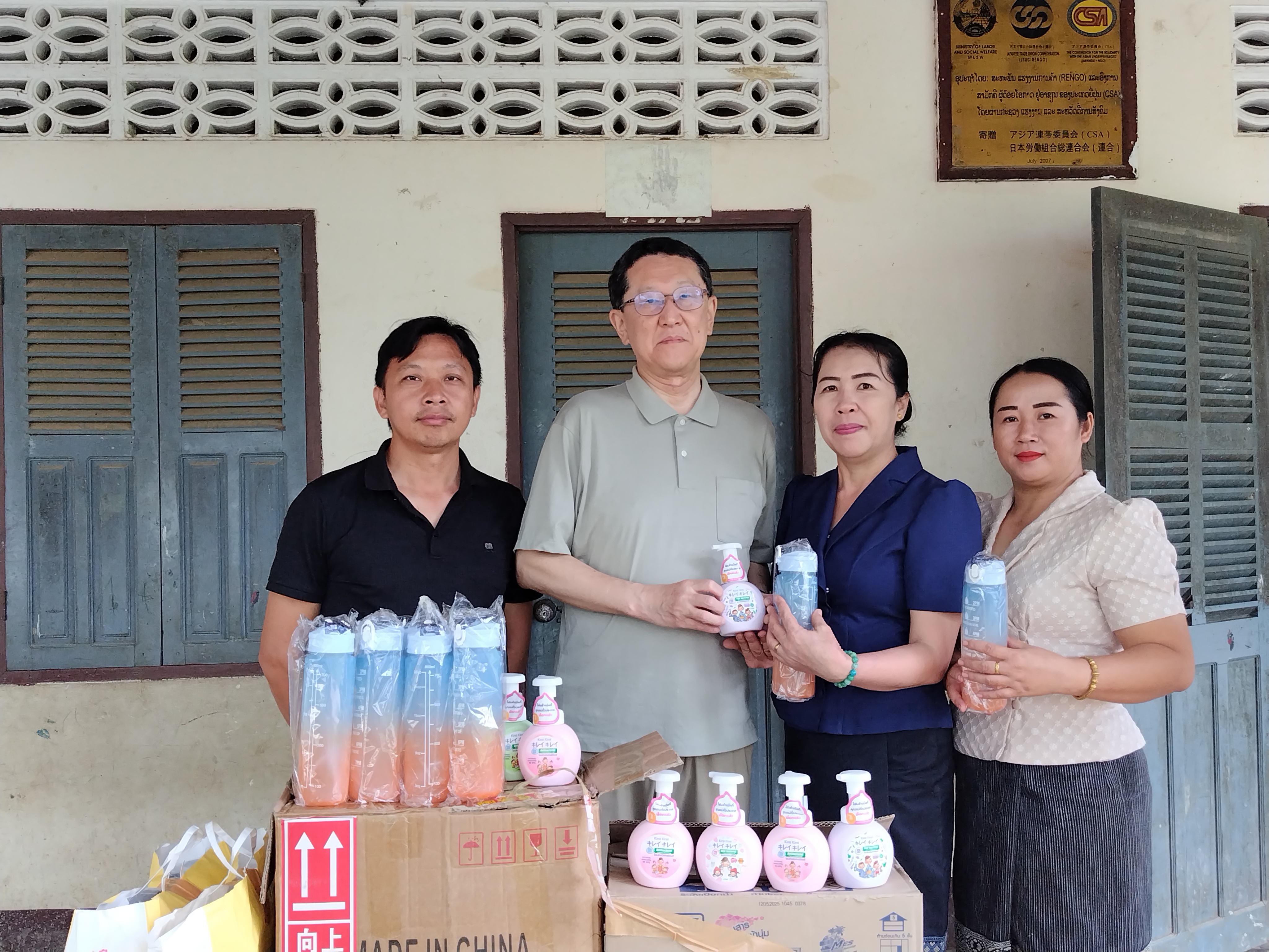 当面は、これまでにCSAが建設寄贈したラオスの小学校を対象として、訪問時にハンドソープと水筒(低学年を中心に)の寄贈をしています。