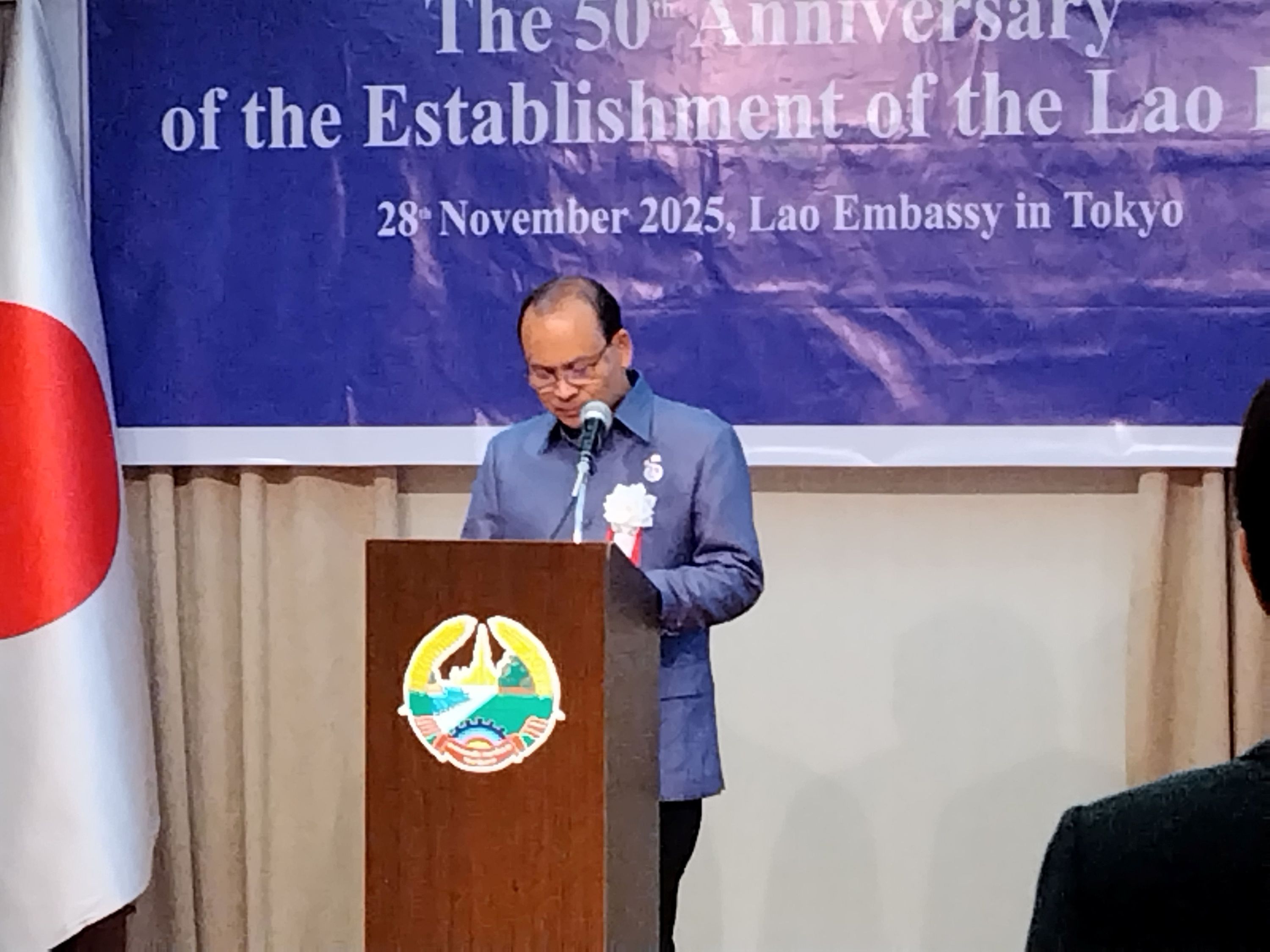 11月28日は、ラオス人民民主共和国建国50周年記念式典が六本木の駐日ラオス大使館で開催され、国光外務副大臣をはじめ国内外から多くの招待客が参列して盛大に行われました。
