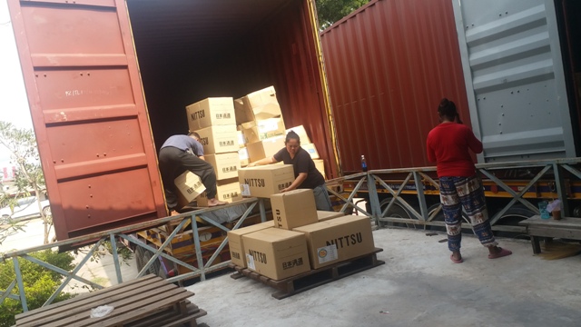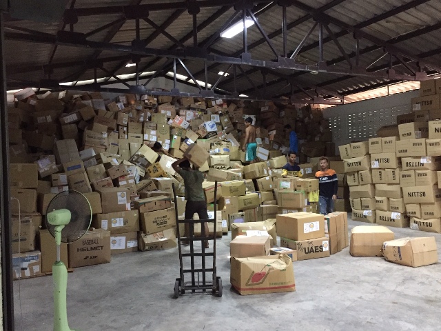 タイの衣類倉庫に衣類が到着 衣類倉庫への搬入(タイ) ラオスの衣類倉庫に届いた衣類