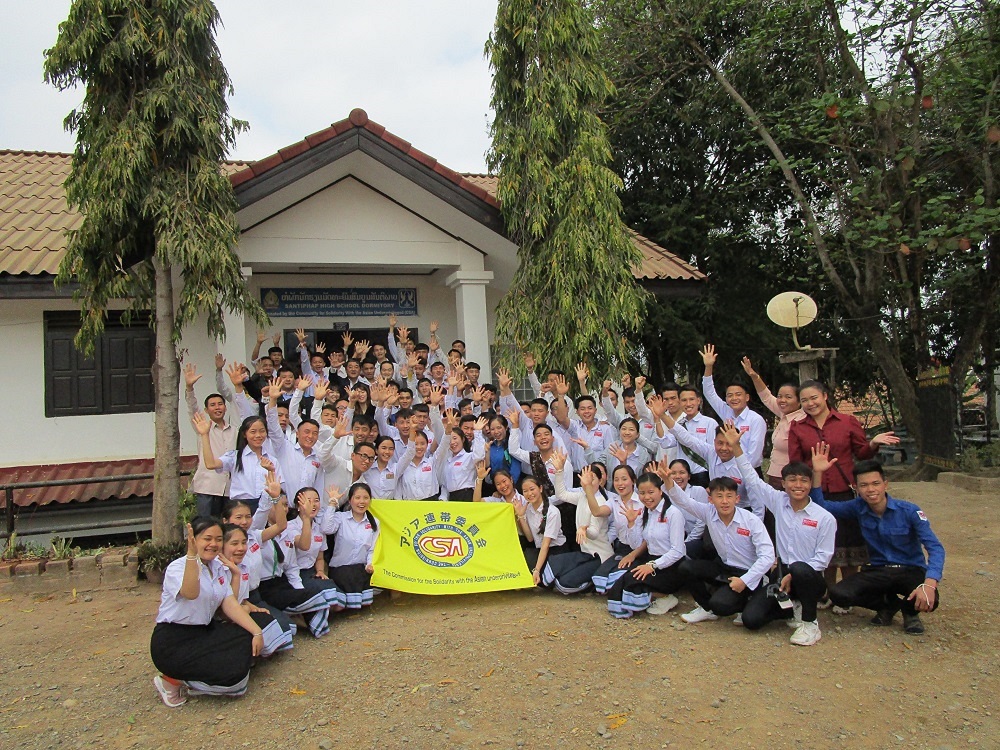 アジア連帯委員会(CSA)は、2002年からラオス北部のルアンプラバン市内にあるラオス国内でも優秀高のサンティパープ高校に学生寮を建設し、90名の寮生の生活支援を行っています。卒寮生はほぼ全員が進学し、ラオスの発展に尽くすべく勉強に励んでいます。