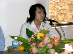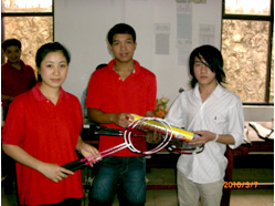 | 2010年3月7日、ラオス・サンティパープ高校・CSA寮の卒寮生で、現在、佐世保工業高等専門学校で留学勉強中のイエン・ハー君(2期生)が寮生や教師ら約65名に「日本での留学状況」等について約1時間講演をしました。 講演は、「CSA寮に入寮してから人生が大きく変わったこと。日本の生活水準の高さ、交通網の整備のすごさを実感していること。海(ラオスには海はありません)そして雪の自然現象にも驚いたこと。そして留学するには理科系を重点に勉強する方が良いなど」、留学のコツなどユーモアを交えての話でした。寮生達も興味深く真剣に話を聞いていました。 また、日本に留学しているヌュンソン君(1期生)、ビエンサイ君、カムチャン君(3期生)そしてイエン君の4名の卒寮生から後輩にバトミントン2セットが贈呈されました。 |