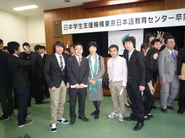 東京日本語教育センターの卒業式で CSA送別会で吉井会長と ラオス留学生のさよならパーティー