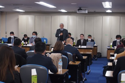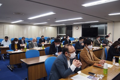 コロナ禍の開催となりましたが、常任理事会は1名の代理出席を含め全理事が出席し、その後の第20回評議員会には40名の評議員が出席しました。澤田会長から開会挨拶と評議員会の成立を確認した上で、その後、報告事項、協議事項について審議しました。