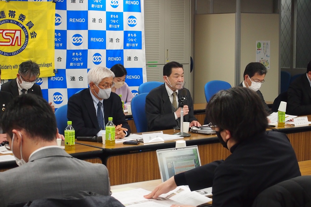 3月23日アジア連帯委員会は、第45回常任理事会並びに第23回評議員会を連合会館内会議室で開催しました。今回の会議は全国の蔓延防止重点措置が解除され、昨年の3月の同会議以降1年ぶりの対面によるリアル会議方式で行いました。