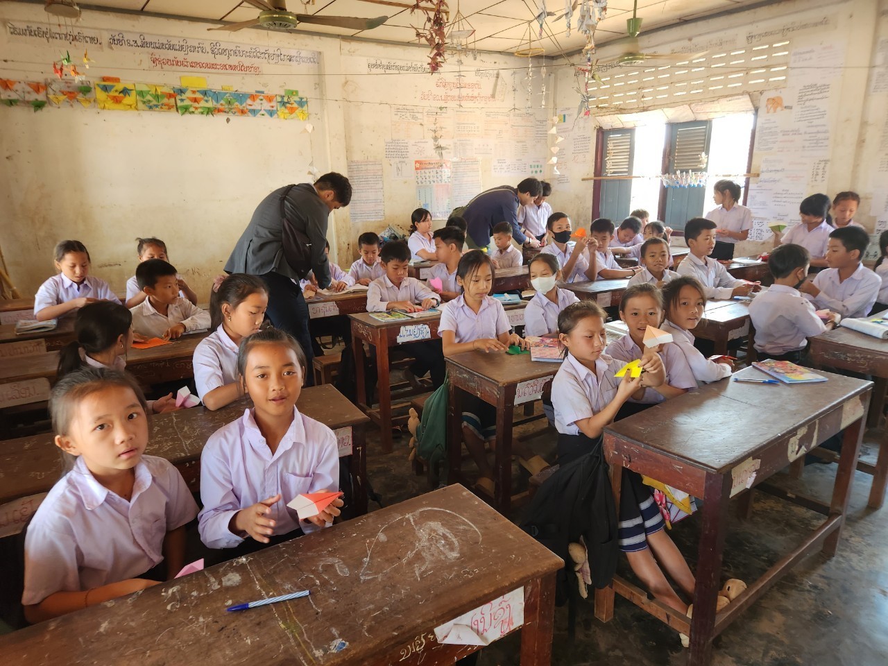 シンフォニアテクノロジー労働組合のご協力により建設中の25番目の小学校では、新校舎の進捗を確認し生徒たちと紙飛行機を作って遊びました。CSAが学生寮の運営支援をしているサンティパープ高校では、勉強熱心な学生たちから大いに歓迎され、先生たちと課題について意見交換をしました。