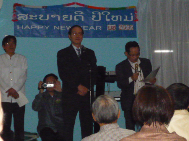 在日ラオス人協会のラオス正月祝賀会は毎年開催され、日本に定住したラオス人が家族で手作り料理を振るまい、ラオスの僧侶と供にお経を唱えるなど今年は新任のケントーンラオス大使を迎え、CSAや、JICA,難民を助ける会などの支援団体から祝辞が述べられた中、ラオス人の少女たちの伝統舞踊が披露され、遠い祖国を偲びました。