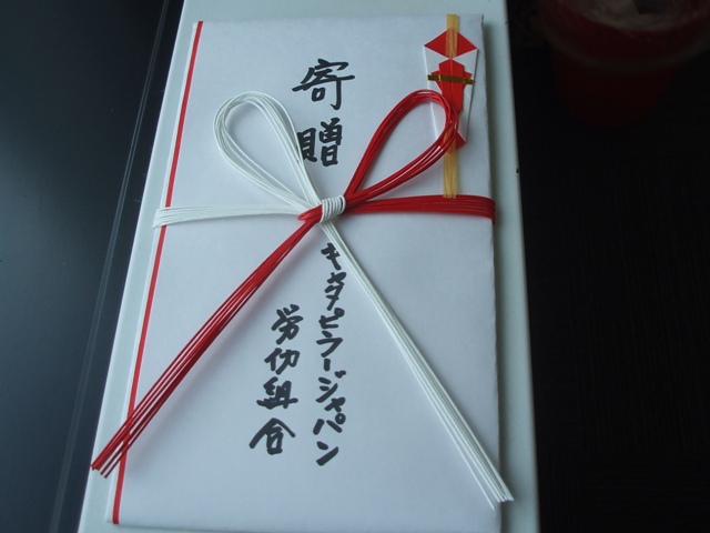 アジア連帯委員会は、キャタピラ-ジャパン労働組合から昨年9月にも「学校建設・補修募金」をいただいています。