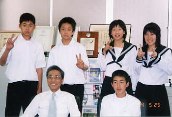 CSAは、5月25日午後、三重県いなべ市立北勢中学校の3年1組第3班の岩本麻実さん、西村聖子さん、中村透君、堂道和成君、伊藤優太君の来訪を受けました。5人は修学旅行の体験学習の一環として来訪したもので、CSAの活動内容などについて質問を受けました。また学校建設募金5,680円を頂きました。この募金は教室にポスターを張り、クラスの人に呼びかけて集めてくれたそうです。