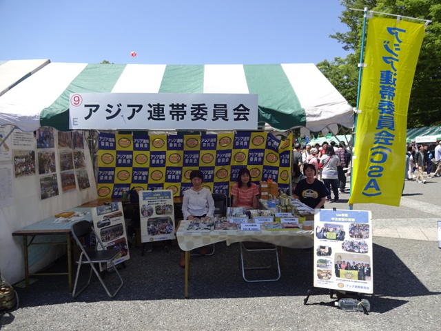 CSAは、4月28日(土)代々木公園で開催された第89回メーデー中央大会に出展しました。今年も晴天に恵まれ、①活動パネル・写真展示、②活動募金の呼びかけ、③ラオスやタイの手工芸品やラオスビールの販売(含む寄付)を行いました。
