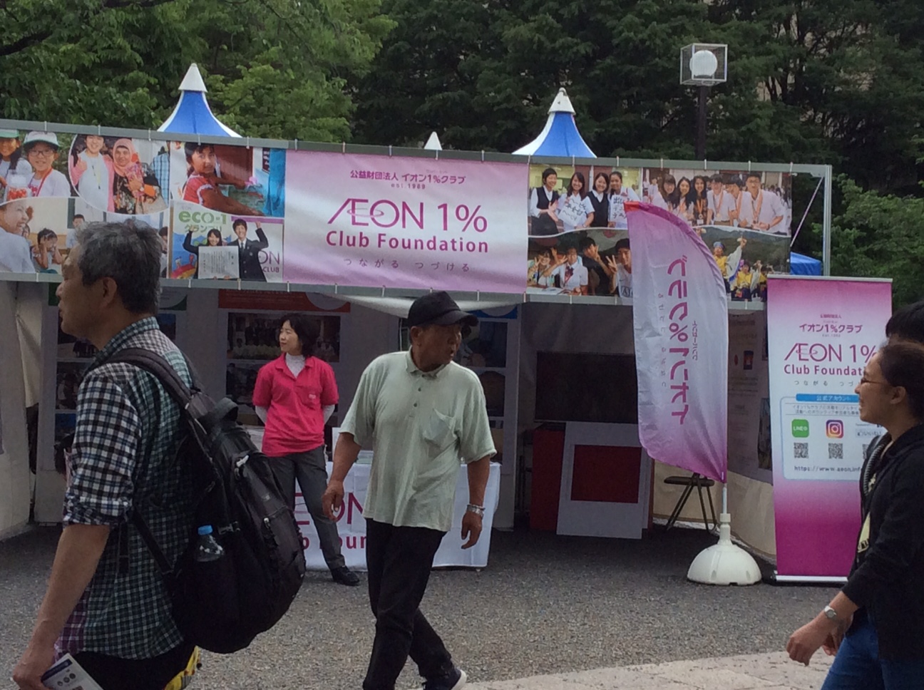 協賛企業やNPOの活動紹介として、イオン1% Club Foundationのブースでカンボジアに小学校を152校建設したことや奨学金等を通じアジアの若者の夢を応援する活動が紹介され、NPOとしてはSchool Aid Japan が小学校を258校の建設・寄贈、またCIESFがキリンとの共同ブースでカンボジアの教育ソフトウェアの支援に貢献していることを紹介しました。
