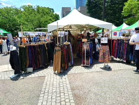 その後、会場内を散策すると、民芸品や食品販売の他、伝統舞踊・バーシー儀式の体験、ラオス語講座など60に及ぶブースが並び、ラオス本国からの出店もありました。『日帰りで行けるラオス』のキャッチコピーの通り、日本でラオスの魅力を知ることができます。私の一番のお目当ては、酷暑のラオスで活動する際に喉を潤してくれる「ビアラオ」です。現地価格の約4倍ではありましたが、美味しくいただきました。