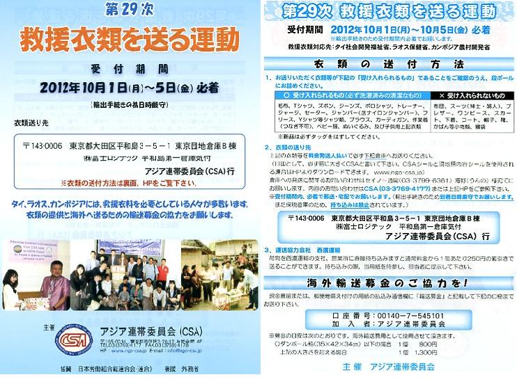 2012.06.25 今年も第29回救援衣類を送る運動がスタートします 10/1(月) ~5(金)の5日間