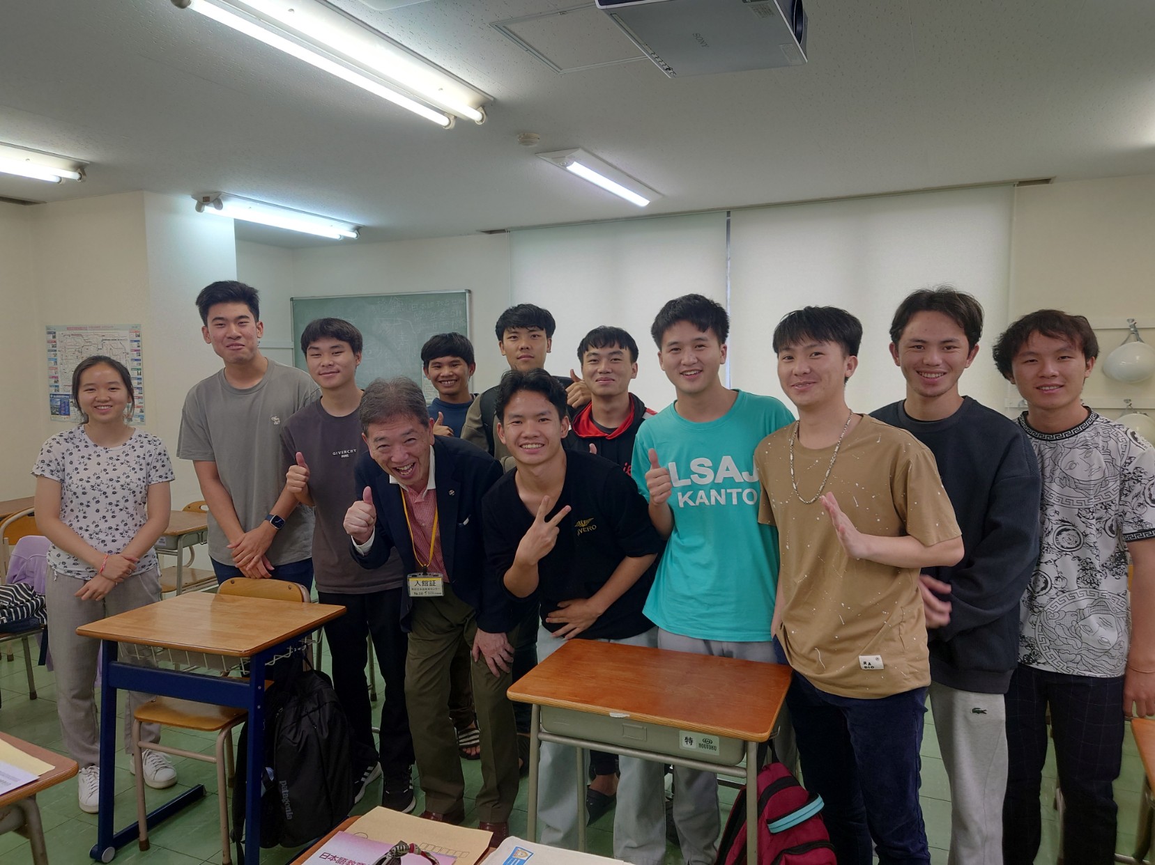 担当教諭より教室に案内をされ、今訪問の目的である、ラオス留学生との交流タイムが始まりました。まずは11名の学生たちから、名前、出身県、好きなスポーツや食べ物等、日本語で自己紹介がありました。これを受け山﨑事務局長から、CSAの組織概要と、5回の渡航で感じたラオスの印象を述べましたが、ラオス語で伝えられたらもっと盛り上がったかと…