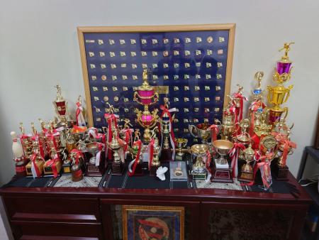 西麻布のラオス大使館入口 書記官(右から2人目)を交えて ボウリング大会トロフィー