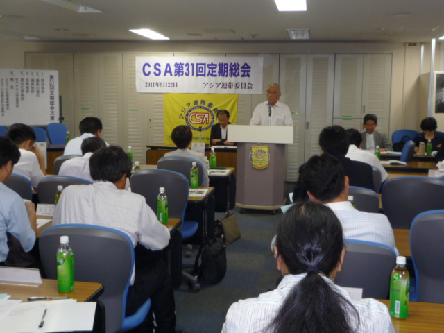 アジア連帯委員会(CSA)は第31回定期総会を2011年9月22日(木)、14時から東京・連合本部3階で開催し、2010年度活動報告、決算報告などが報告・承認された。今年度事業は(1)救援衣料を送る運動 (2)ラオス・小学校建設 (3)遠隔地校生支援(サンティパープ高校・寮生支援)を柱とした2011年度事業計画方針、2011年度予算案などが報告、審議され、満場一致で承認された。