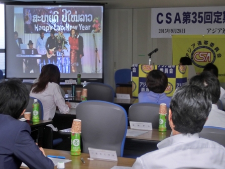 総会では、近藤常任理事が司会を務め、開会挨拶を行った後、倉田常任理事を議長に進められ、冒頭、吉井会長が挨拶しました。 来賓として連合の小川副事務局長が挨拶、在日ラオス大使館からソンポーン一等書記官が出席し、ケントーン大使からのメッセージを読み上げました。
