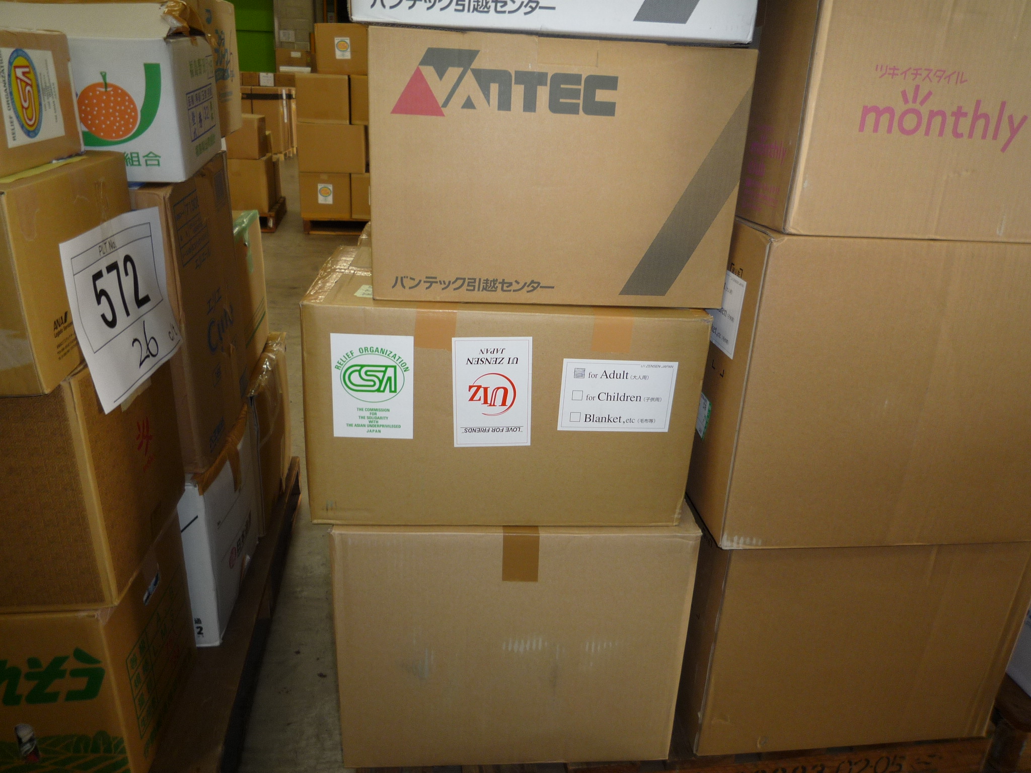 今年は10月4日から8日までの5日にわたって実施した「第27次救援衣類を送る運動」はお蔭様で無事に終了しました。全国の労働組合、企業などの団体や多くの個人の方々からお送りいただいた衣類は、昨年を上回り、約209トン(209,430 Kg.)にのぼりました。